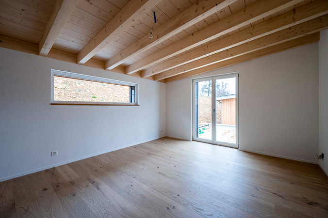 Sichtbare Sparrenlage mit Buchenpfetten im OG