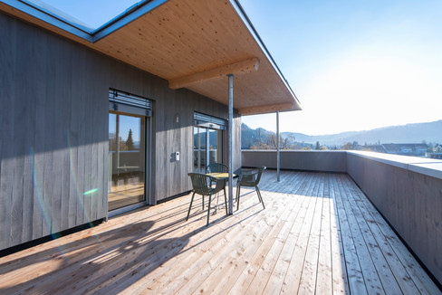 Sichtbare Balkenlagen und Holzdecken im Elementbau
